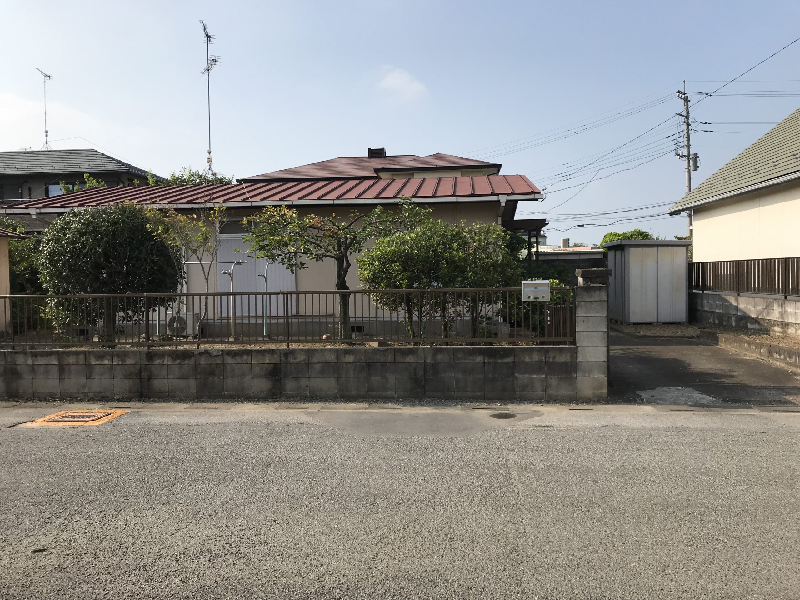 お庭に生い茂った雑草を刈り、整地、敷砂利いたしました。