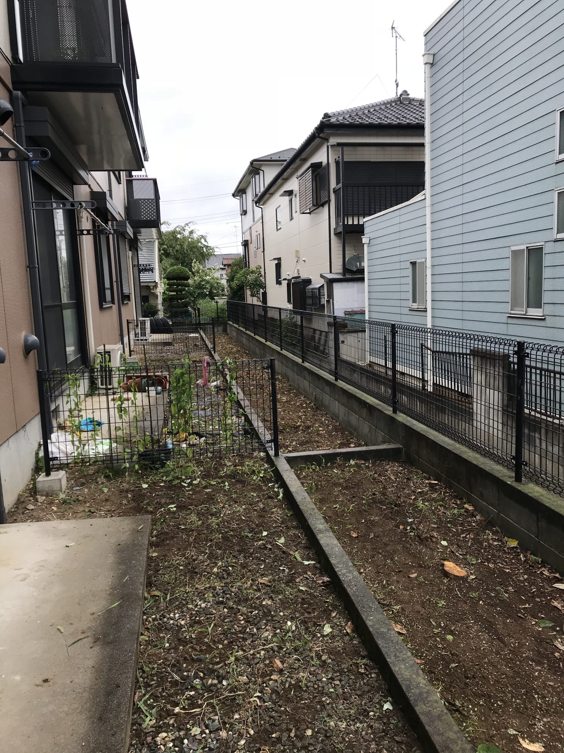 お庭の壁の際に植えていた植木を伐根いたしました。