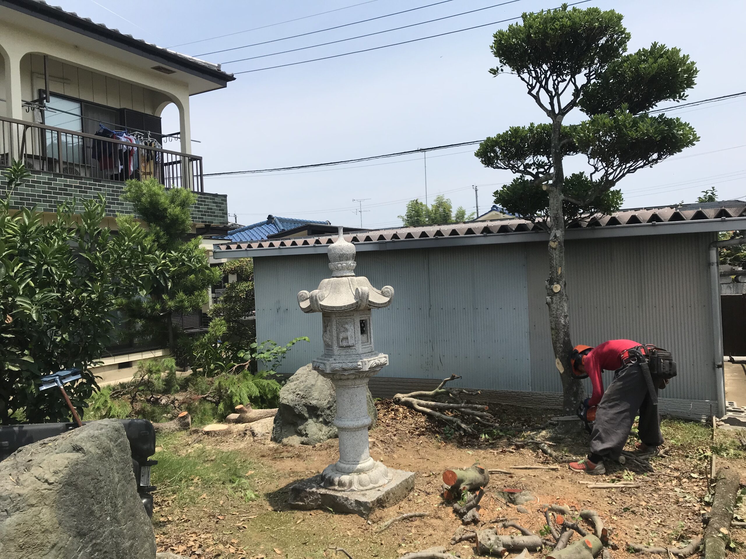 庭の植木の伐採を行いました。松、マキ、カエデ、キンモクセイ、など10本程の伐採を行いました。