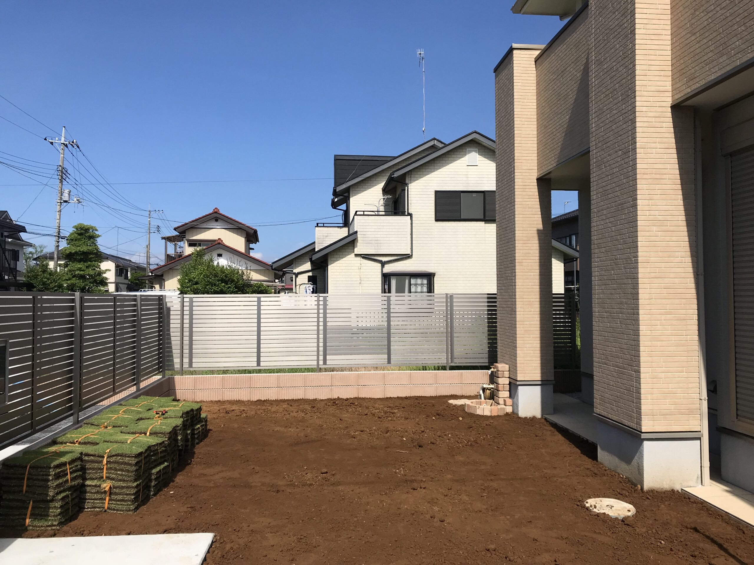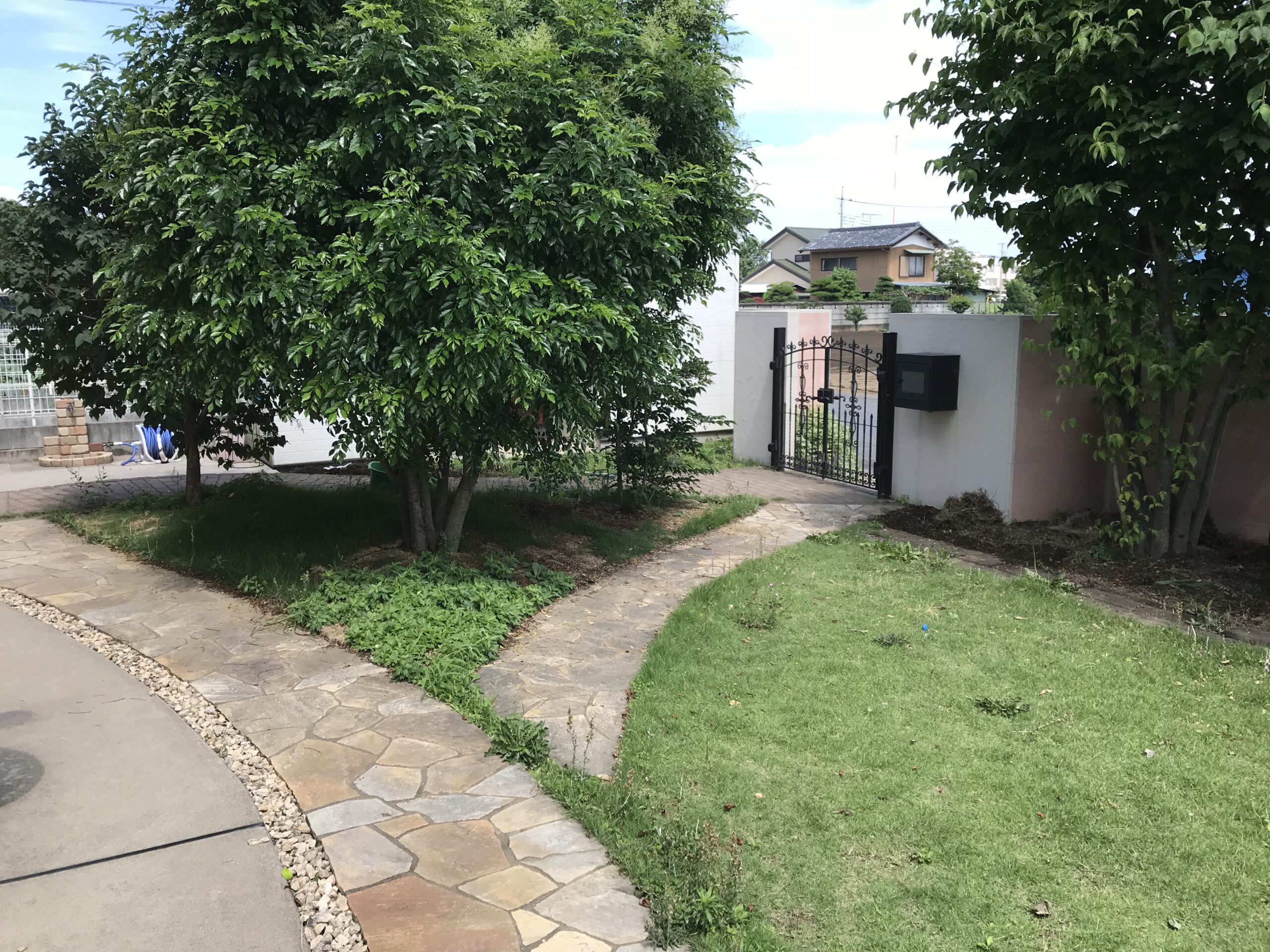 お庭に生い茂った雑草を刈り、整地、敷砂利いたしました。
