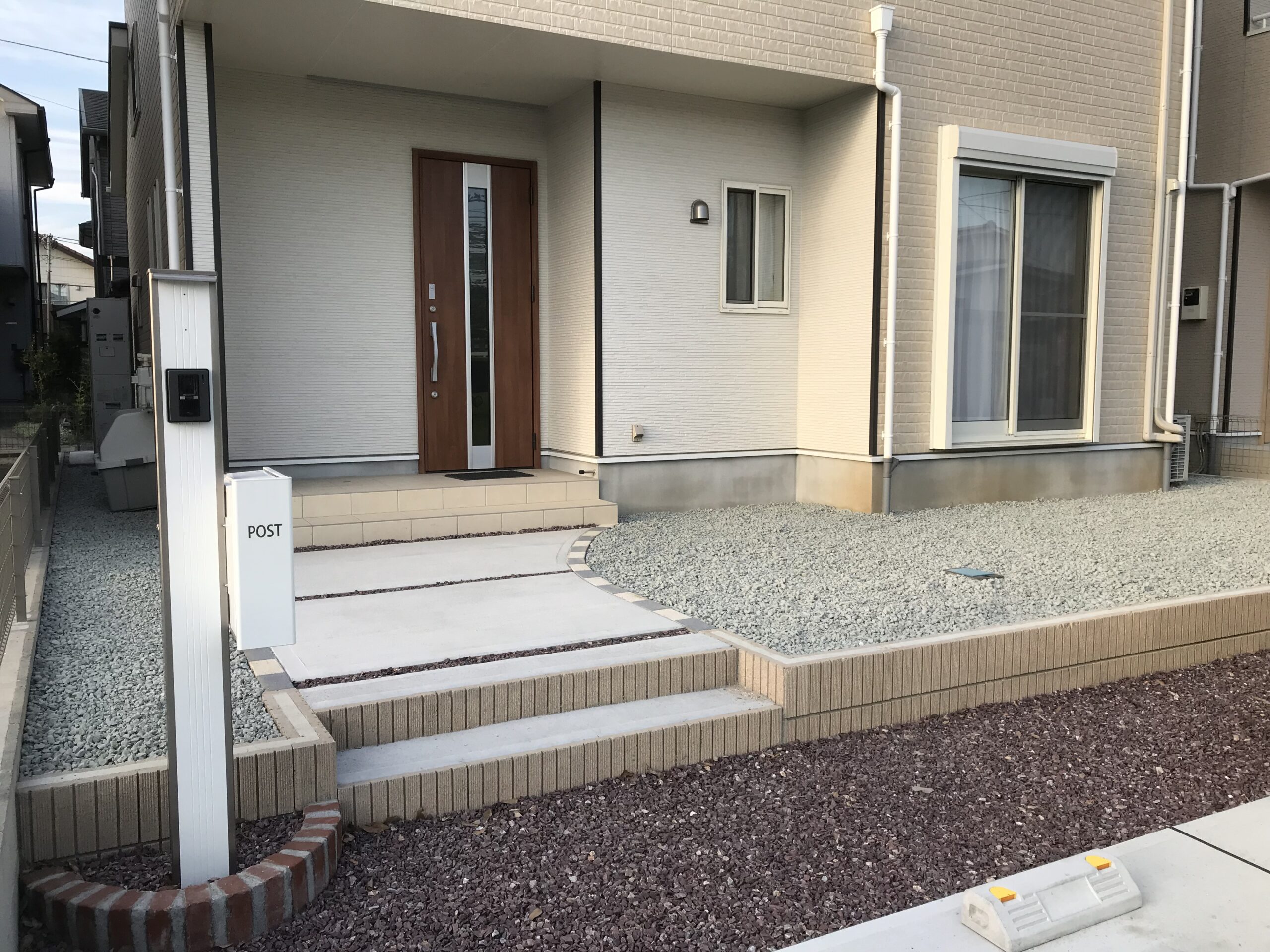 お庭に生い茂った雑草を刈り、整地、敷砂利いたしました。