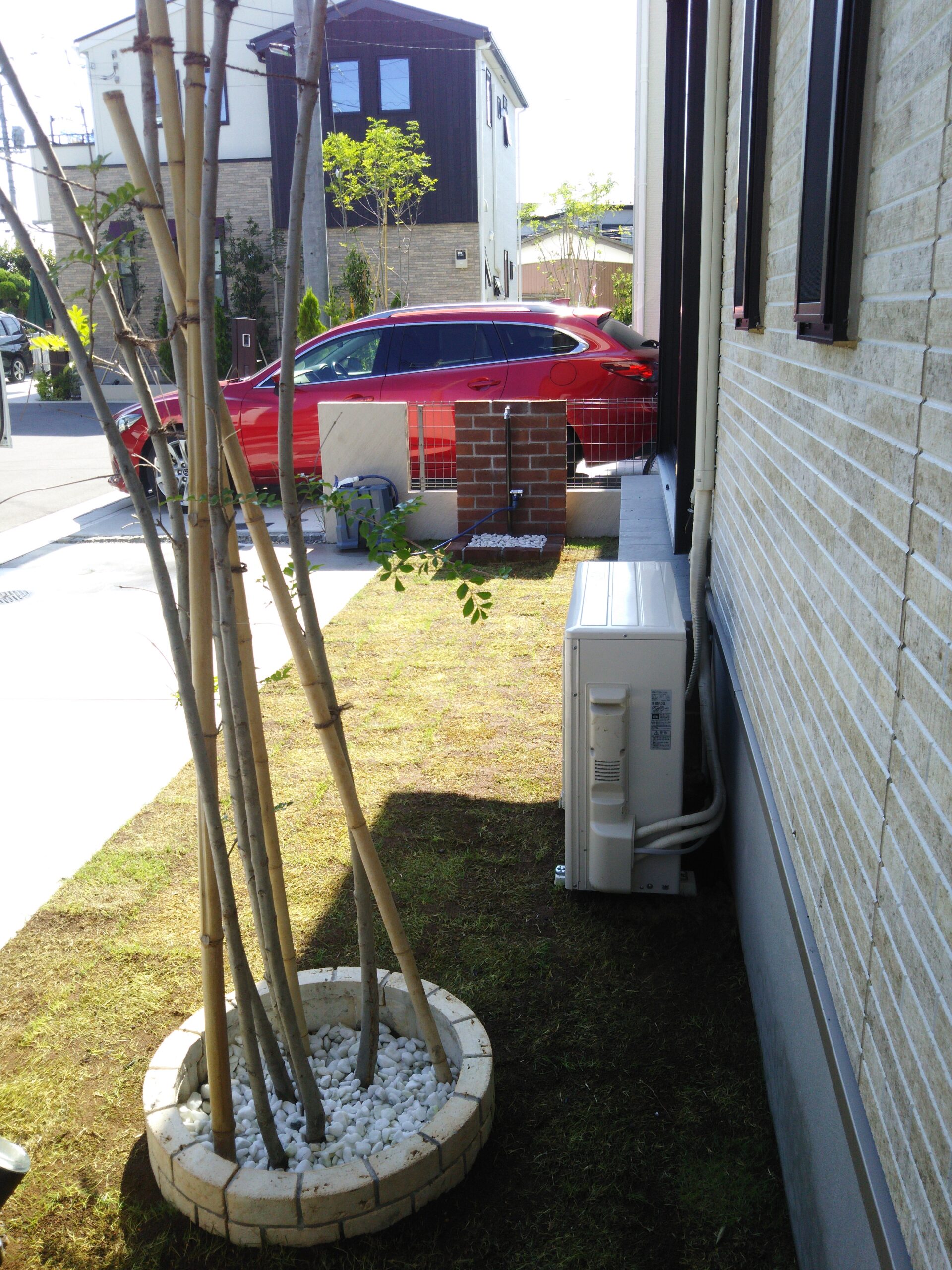 花壇と砂利を撤去した場所に芝生を敷きました。