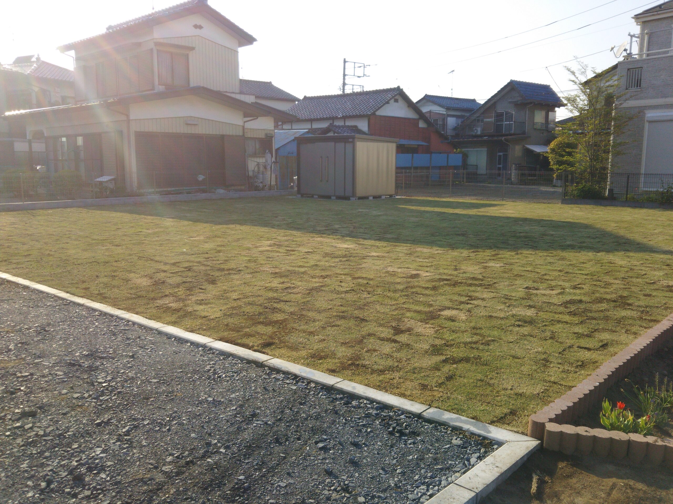お庭に生い茂った雑草を刈り、整地、敷砂利いたしました。