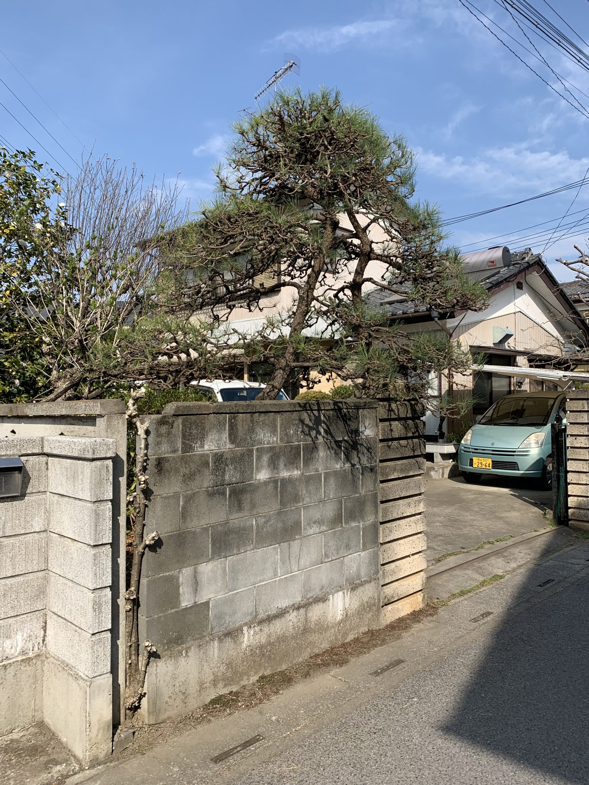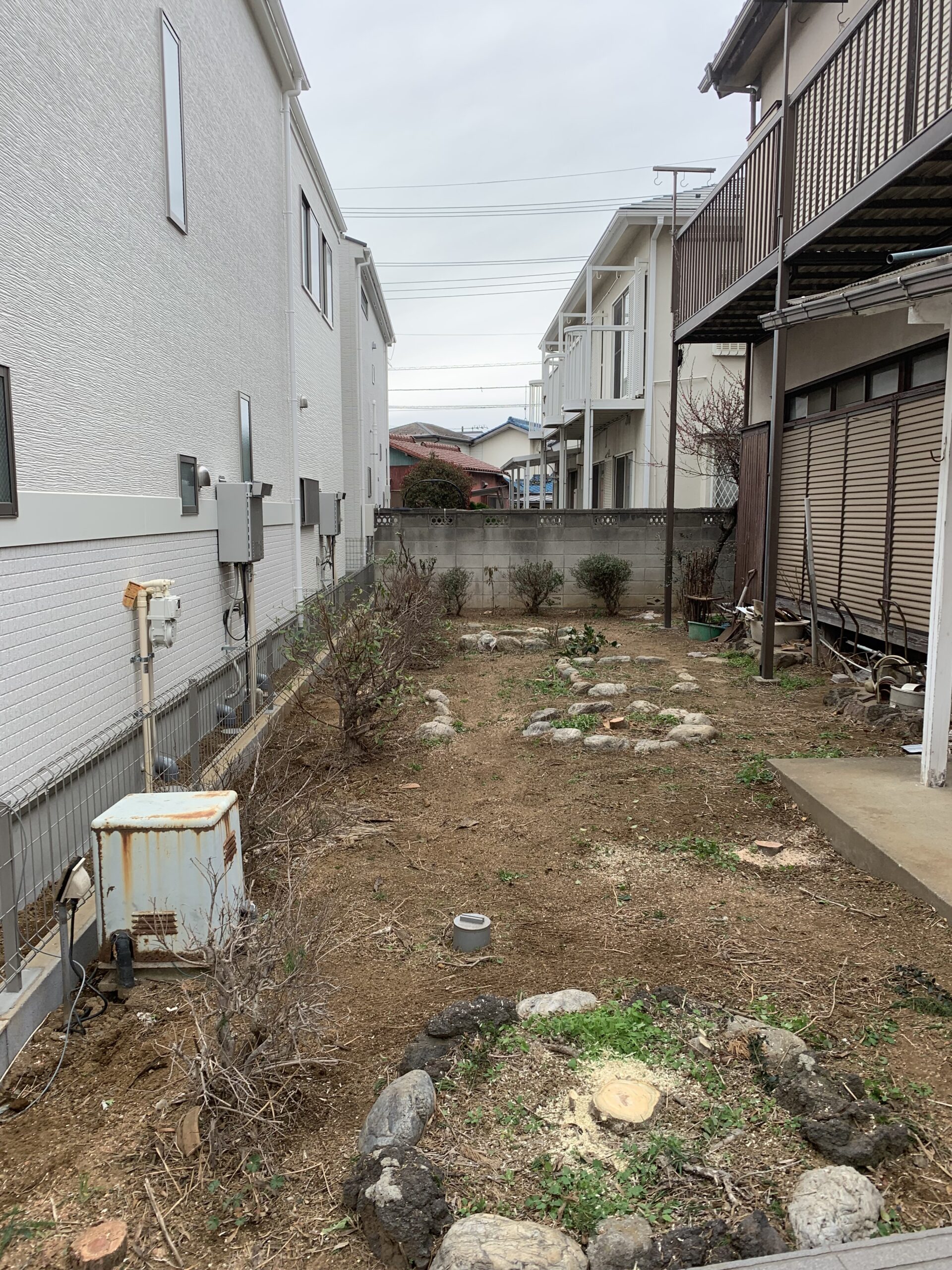 お庭の壁の際に植えていた植木を伐根いたしました。