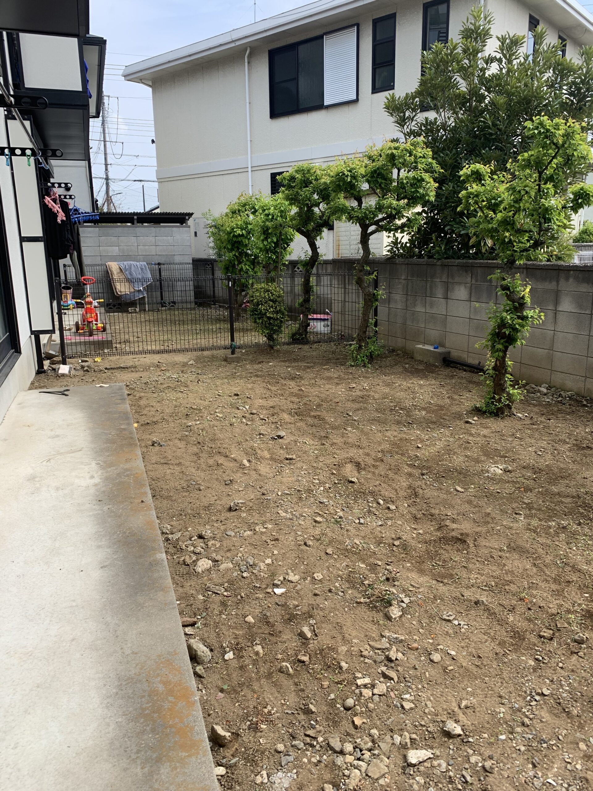 お庭に生い茂った雑草を刈り、整地、敷砂利いたしました。