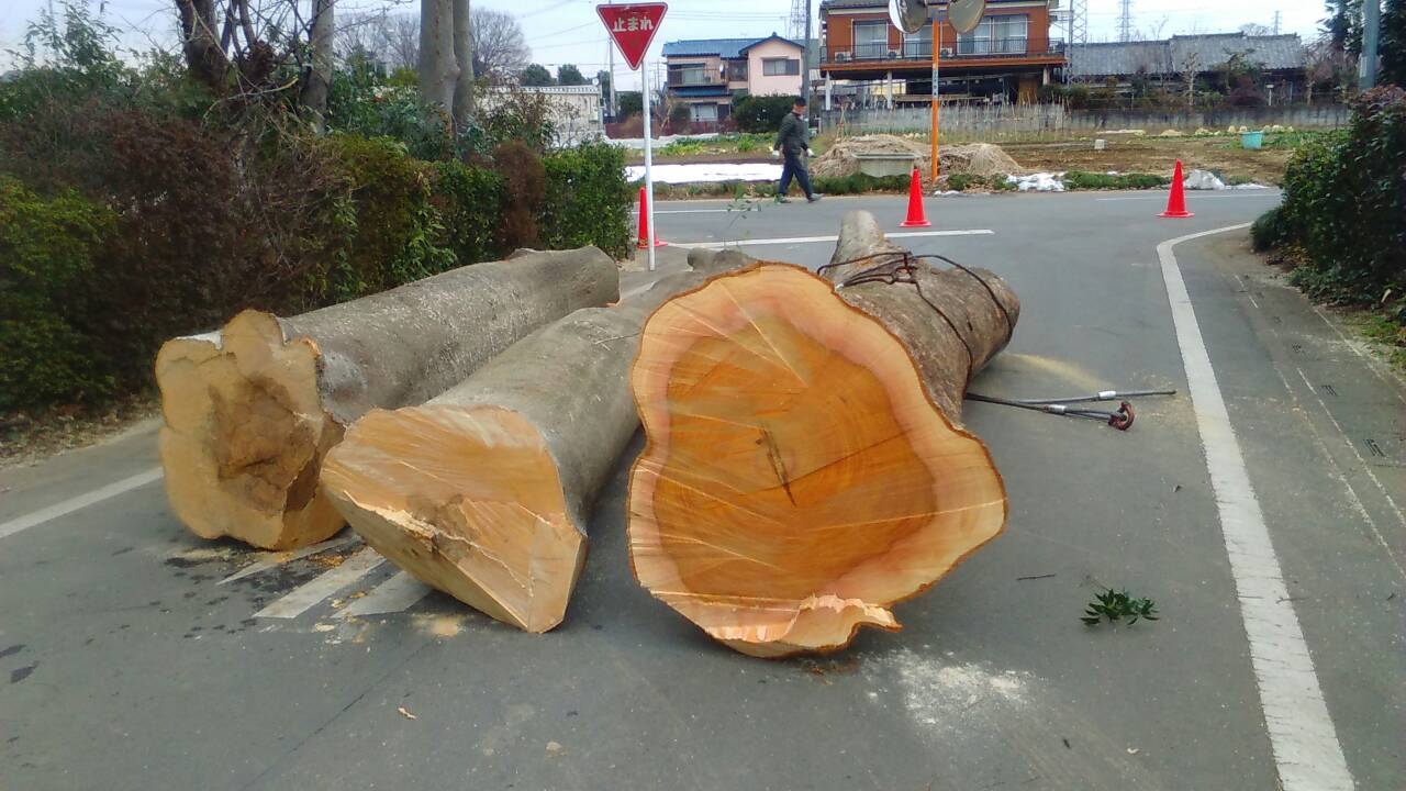 伐採、抜根した木は、桜、カエデ、杉、ヒノキです。